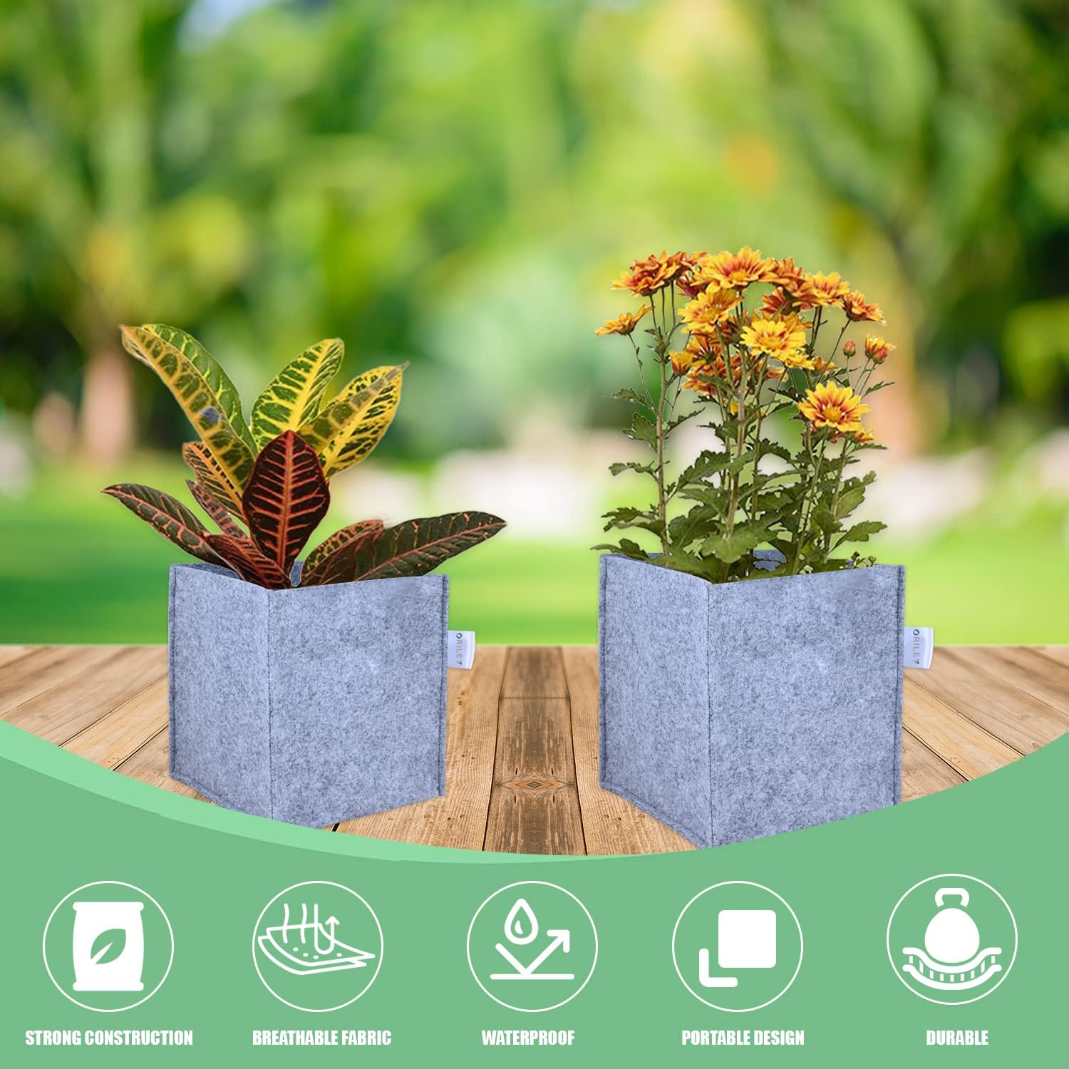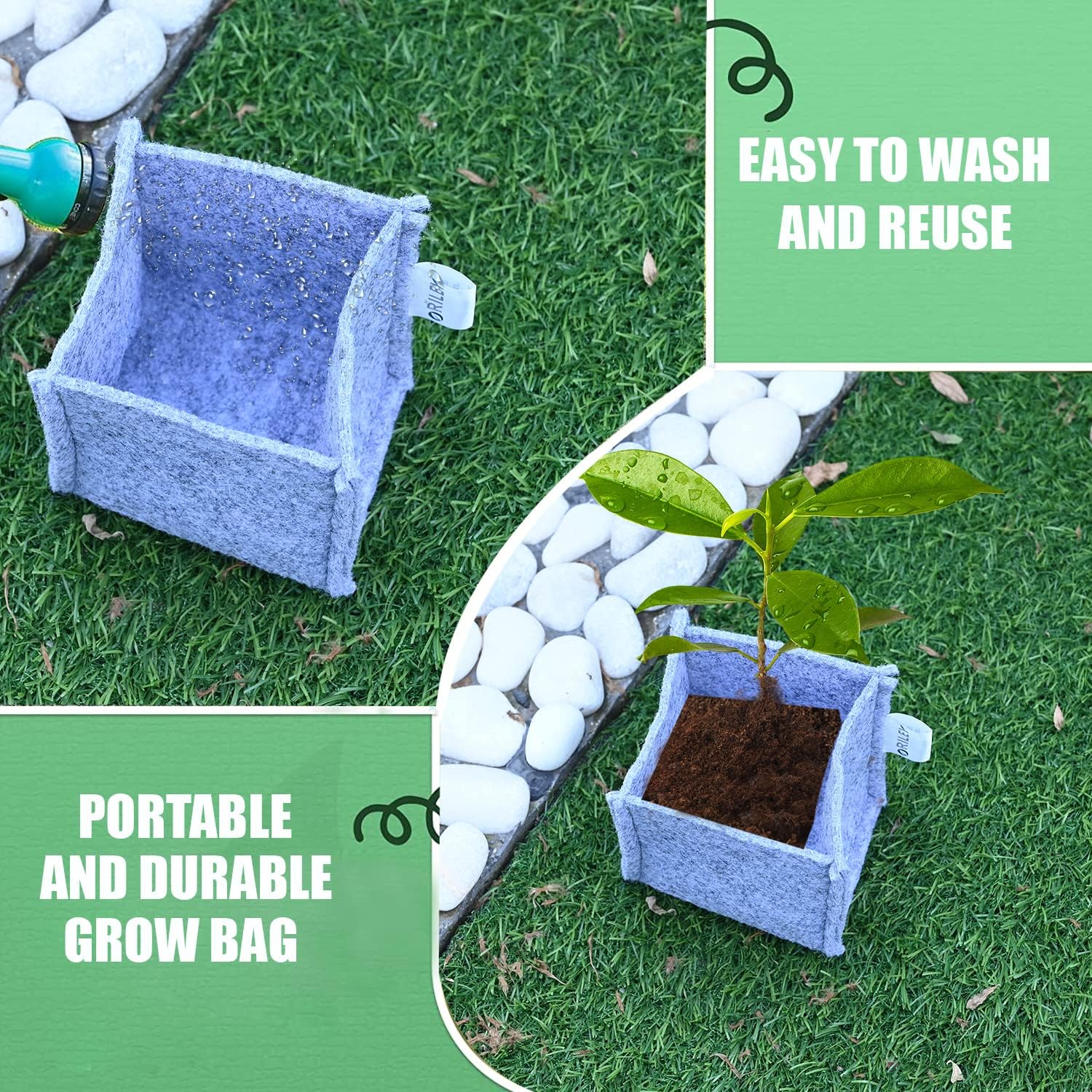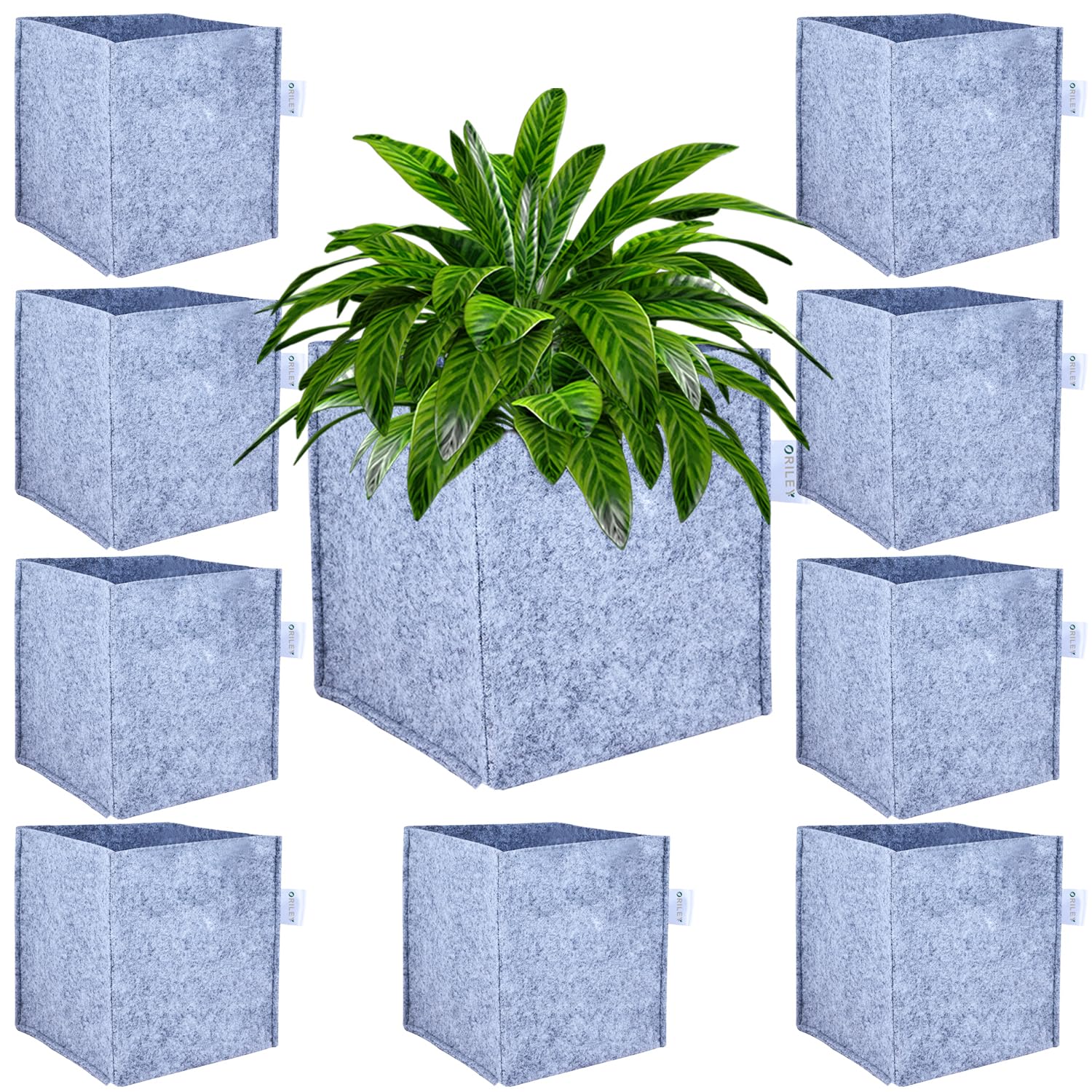 ORILEY Grow Bag Heavy Duty Geo Fabric Plants Flower Growing Bags Floor Standing Mount Type for Home Garden Balcony Nursery (Grey, Square, 500 GSM 6x6x6 inch Pack of 10)