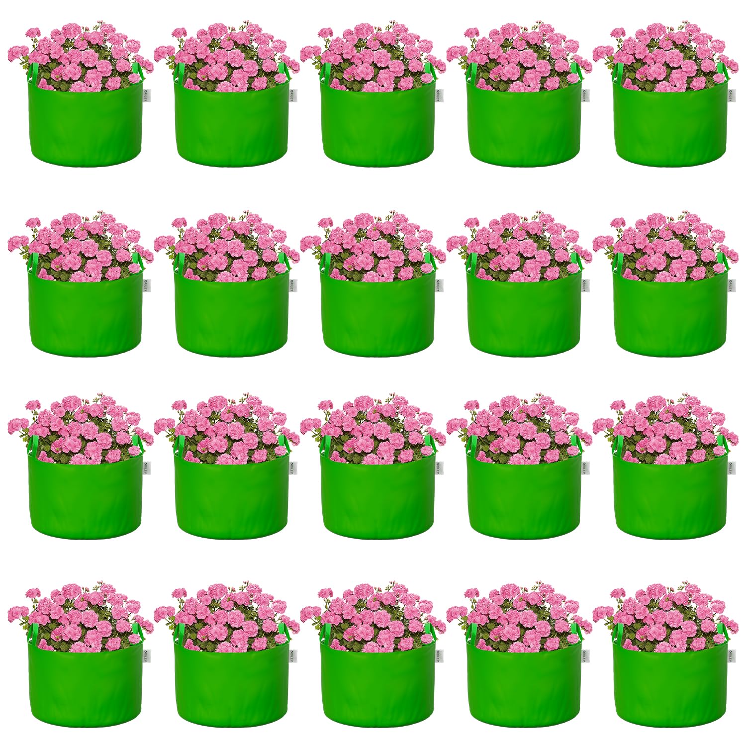 ORILEY Grow Bag Heavy Duty HDPE Plants Flower Growing Bags Floor Standing Mount Type for Home Garden Balcony Terrace Kitchen Nursery (Green, Round with Handle, 250 GSM 12 x 8 inch Pack of 20)