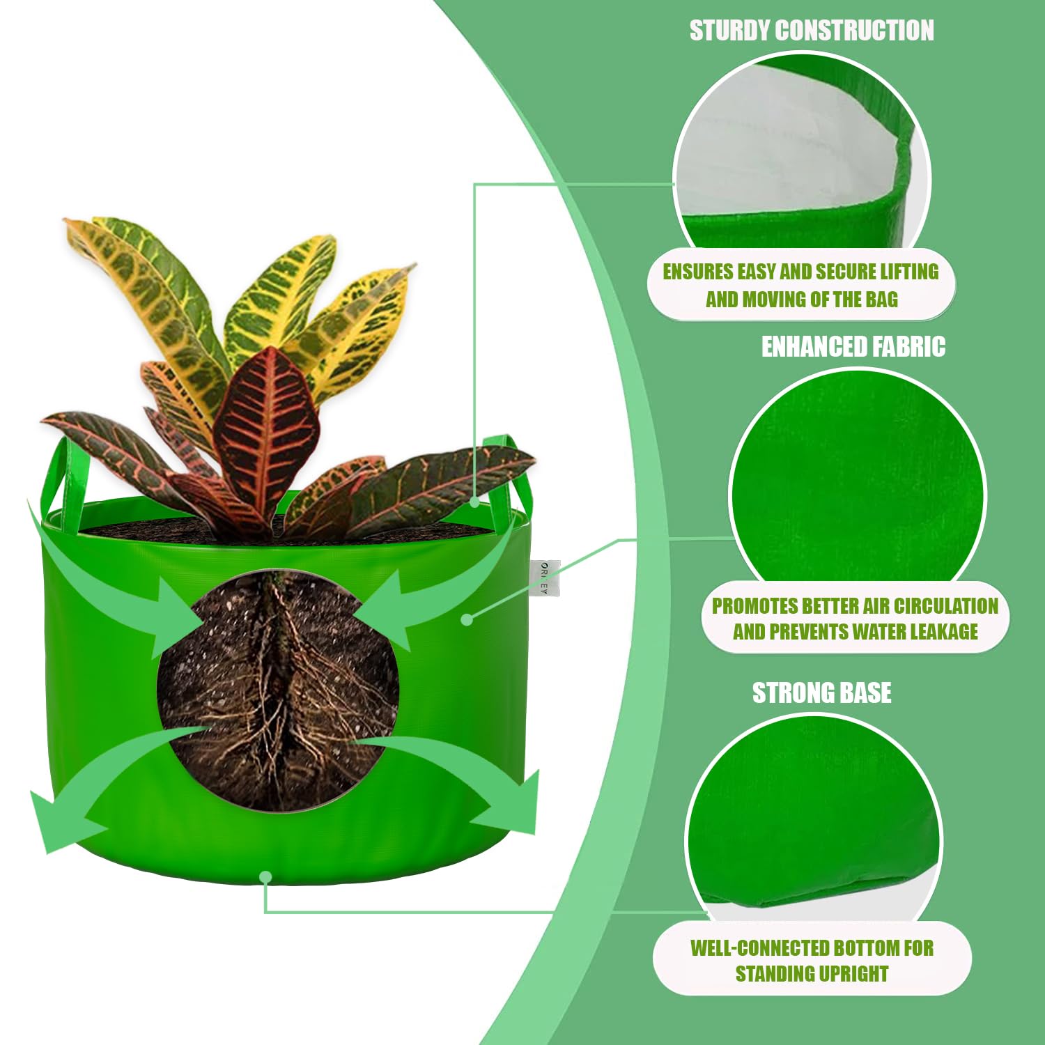 LIGHTWEIGHT & DURABLE: The soft, light and durable grow bag with sturdy material allows easy and safe moving, moisture drains out easily and allows air to circulate around the plant and its roots.