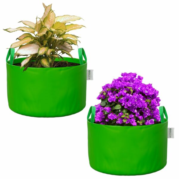 ORILEY Grow Bag Heavy Duty HDPE Plants Flower Growing Bags Floor Standing Mount Type for Home Garden Balcony Terrace Kitchen Nursery (Green, Round with Handle, 450 GSM 12 x 12 inch Pack of 2)