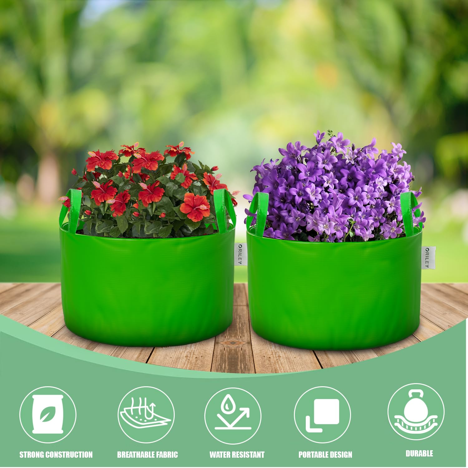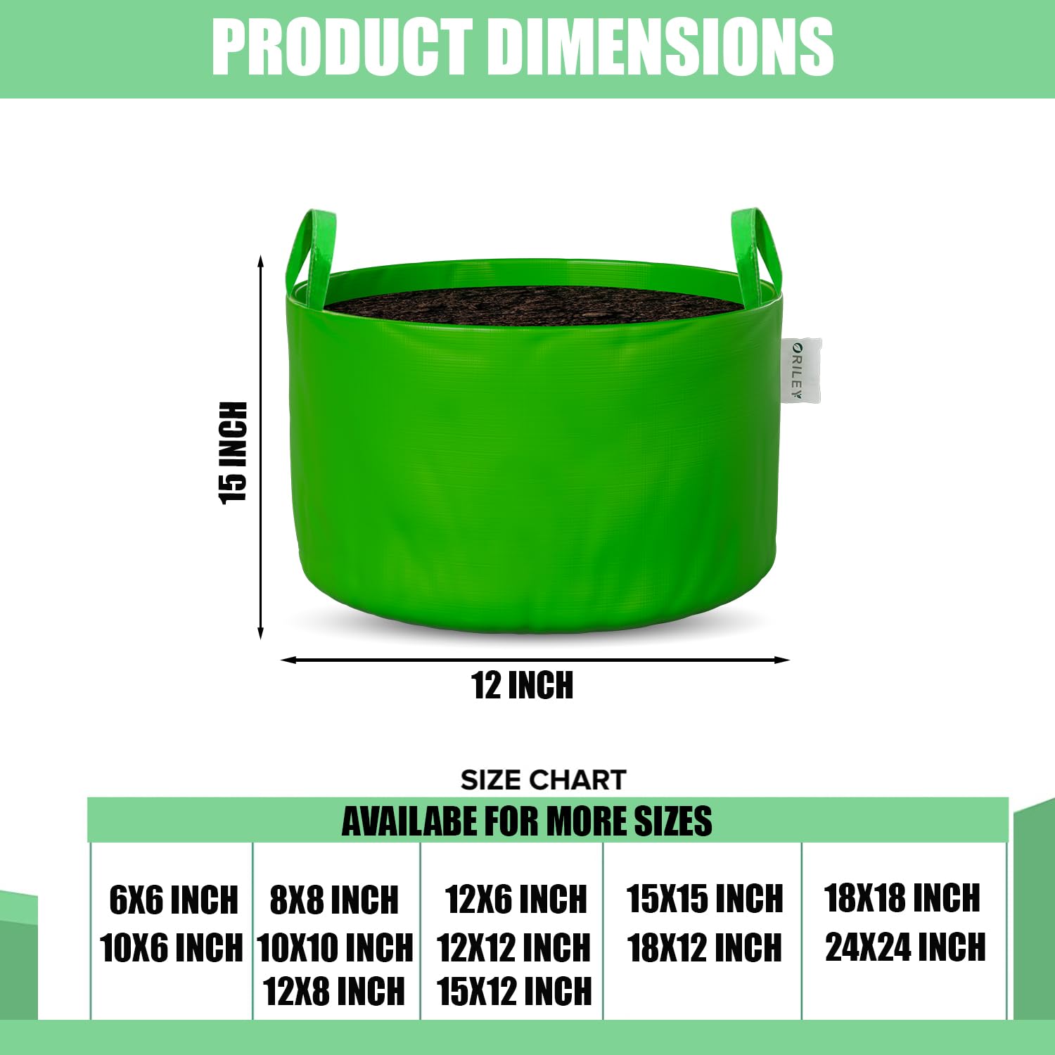 ORILEY Grow Bag Heavy Duty HDPE Plants Flower Growing Bags Floor Standing Mount Type for Home Garden Balcony Terrace Kitchen Nursery (Green, Round with Handle, 450 GSM 15 x 12 inch Pack of 20)