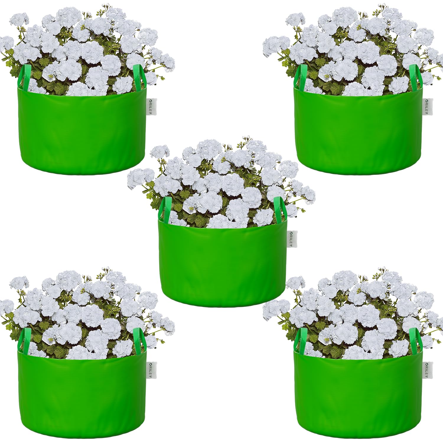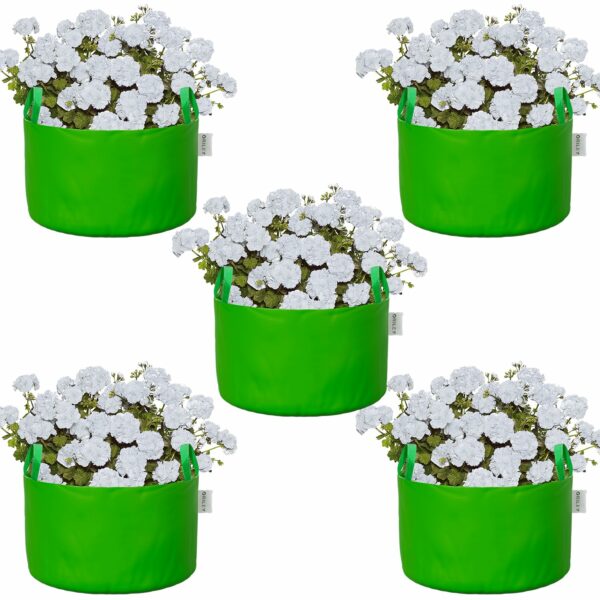ORILEY Grow Bag Heavy Duty HDPE Plants Flower Growing Bags Floor Standing Mount Type for Home Garden Balcony Terrace Kitchen Nursery (Green, Round with Handle, 450 GSM 18 x 18 inch Pack of 5)