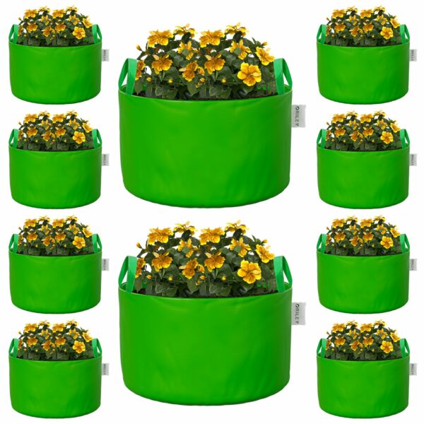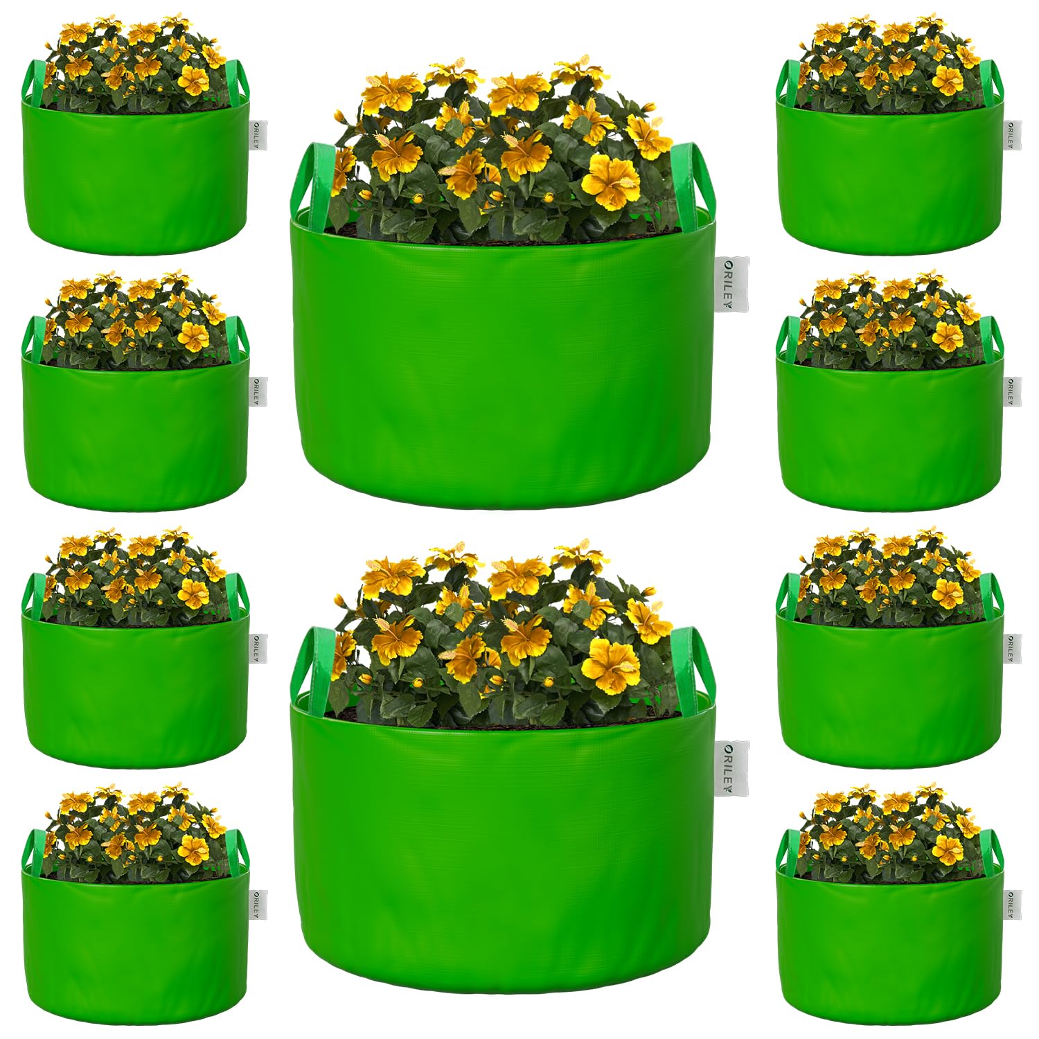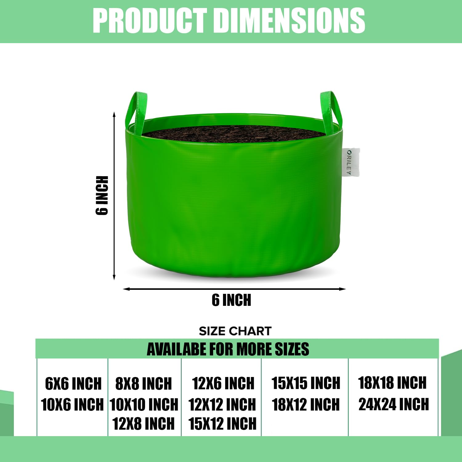 ORILEY Grow Bag Heavy Duty HDPE Plants Flower Growing Bags Floor Standing Mount Type for Home Garden Balcony Terrace Kitchen Nursery (Green, Round with Handle, 450 GSM 6 x 6 inch Pack of 10)