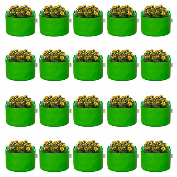 ORILEY Grow Bag Heavy Duty HDPE Plants Flower Growing Bags Floor Standing Mount Type for Home Garden Balcony Terrace Kitchen Nursery (Green, Round with Handle, 450 GSM 6 x 6 inch Pack of 20)