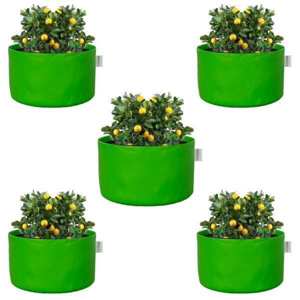 ORILEY Grow Bag Heavy Duty HDPE Plants Flower Growing Bags Floor Standing Mount Type for Home Garden Balcony Terrace Kitchen Nursery (Green, Round Without Handle, 250 GSM 10 x 10 inch Pack of 5)