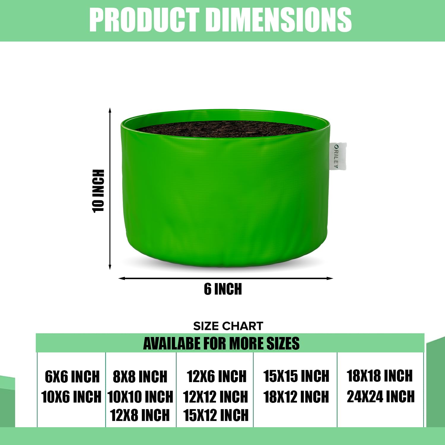 ORILEY Grow Bag Heavy Duty HDPE Plants Flower Growing Bags Floor Standing Mount Type for Home Garden Balcony Terrace Kitchen Nursery (Green, Round Without Handle, 250 GSM 10 x 6 inch Pack of 20)