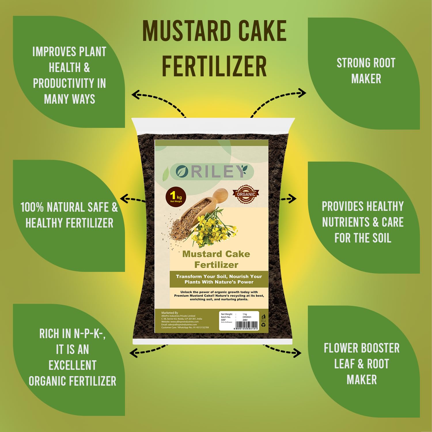 - NUTRIENT-RICH ORGANIC FERTILIZER: Mustard Cake Powder is a natural and nutrient-rich organic fertilizer that provides plants with a well-balanced blend of essential nutrients, including nitrogen, phosphorus, potassium, and micronutrients.