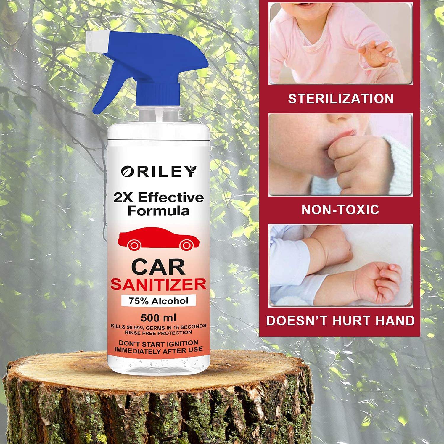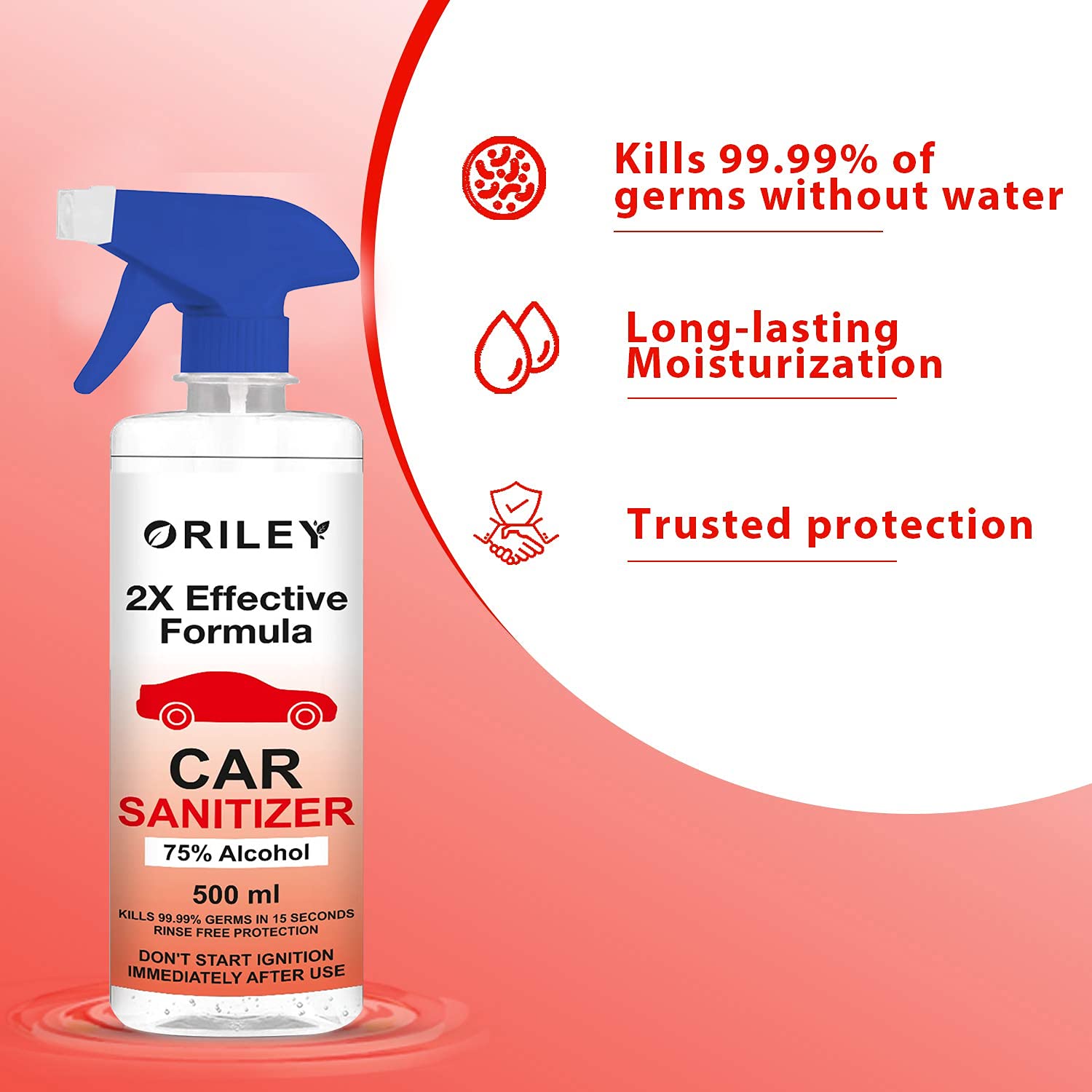 INSTANT CAR SANITIZER: Oriley Instant Car Sanitizer is a 75% Isopropyl Alcohol based palm cleanser that removes germs & bacteria from your Car to keep you safe from all kind of infection-causing possibilities whether you?re indoor & outdoor!