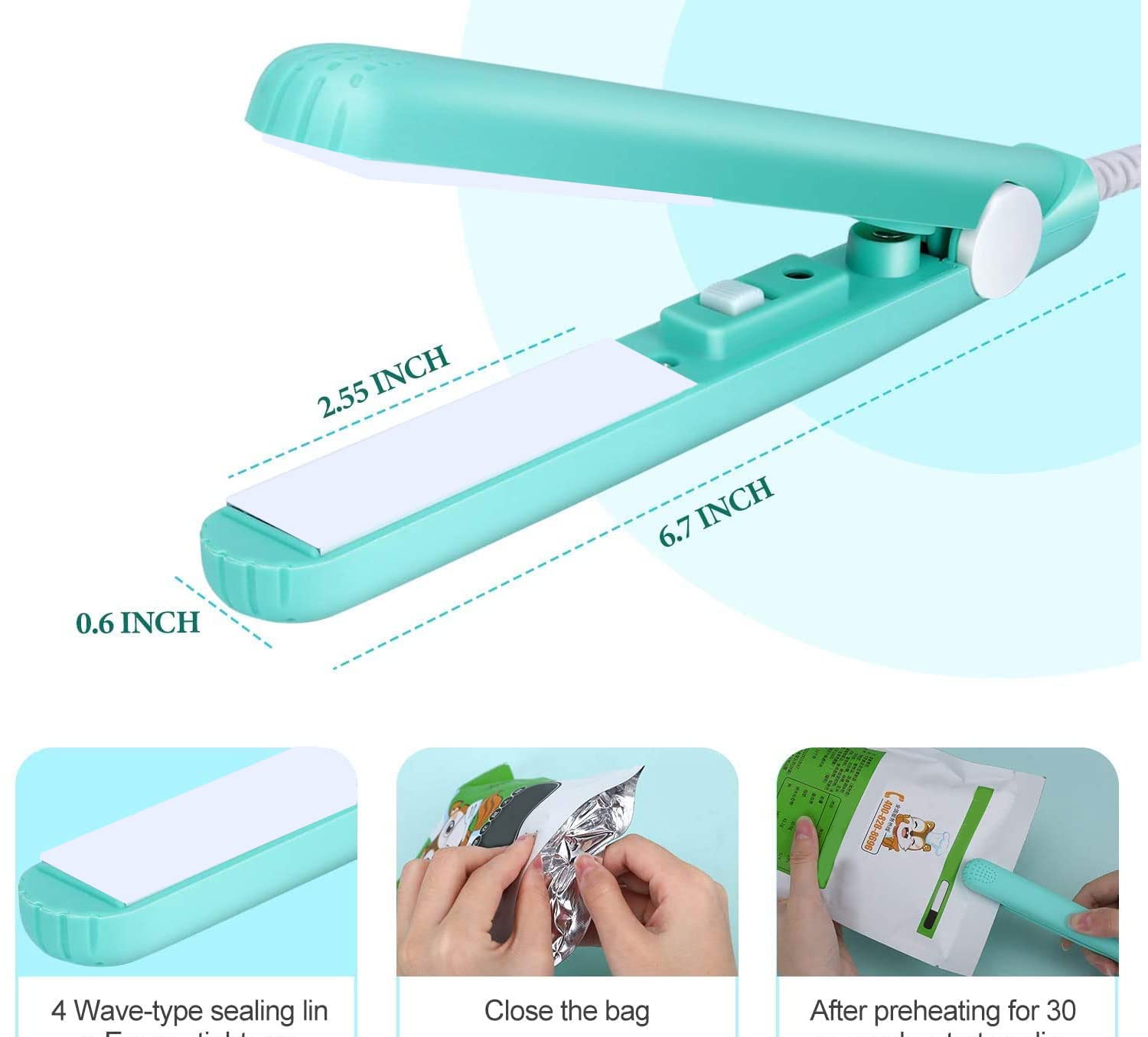 • AIRTIGHT SEAL: This mini heat sealer creates an airtight seal, prevent your food from tasting bland and stale, and lock in freshness and flavour. Also, safely pack cosmetics when travelling.