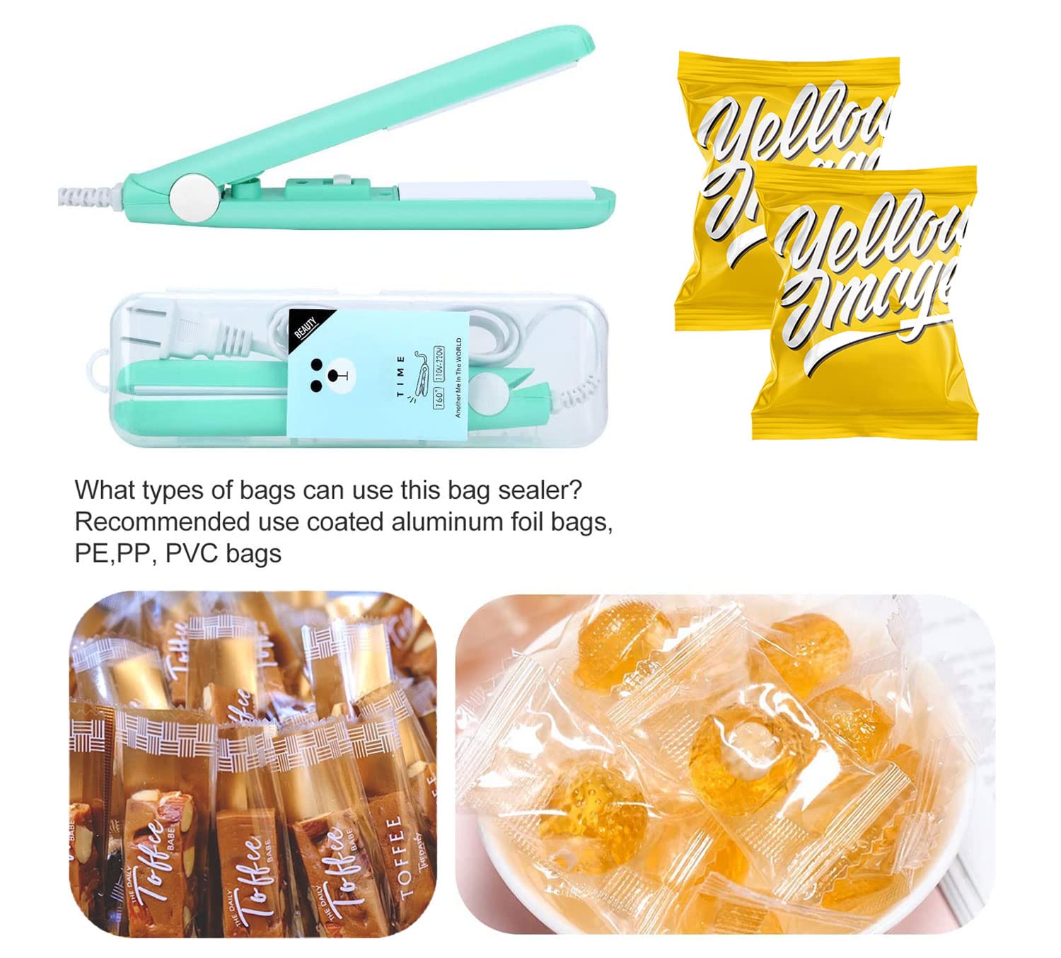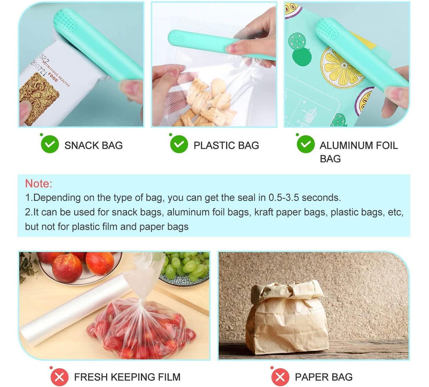 • KEEPS FOOD FRESH & SAFE: The heat sealer is used to seal the PVC bags that store potato chips, nuts, snacks, grains and food. The chip bag sealer is helpful to keep these foods fresh and safe.