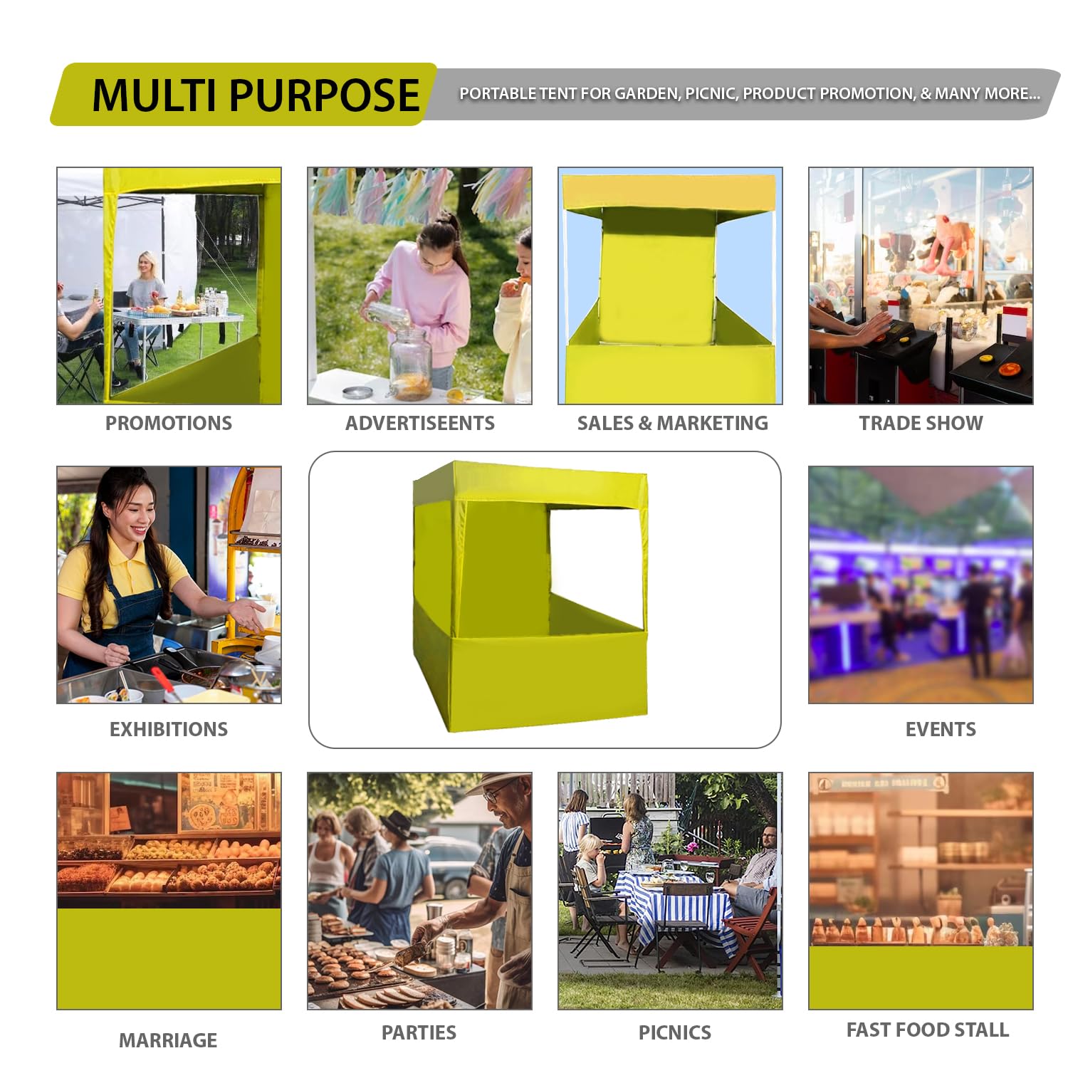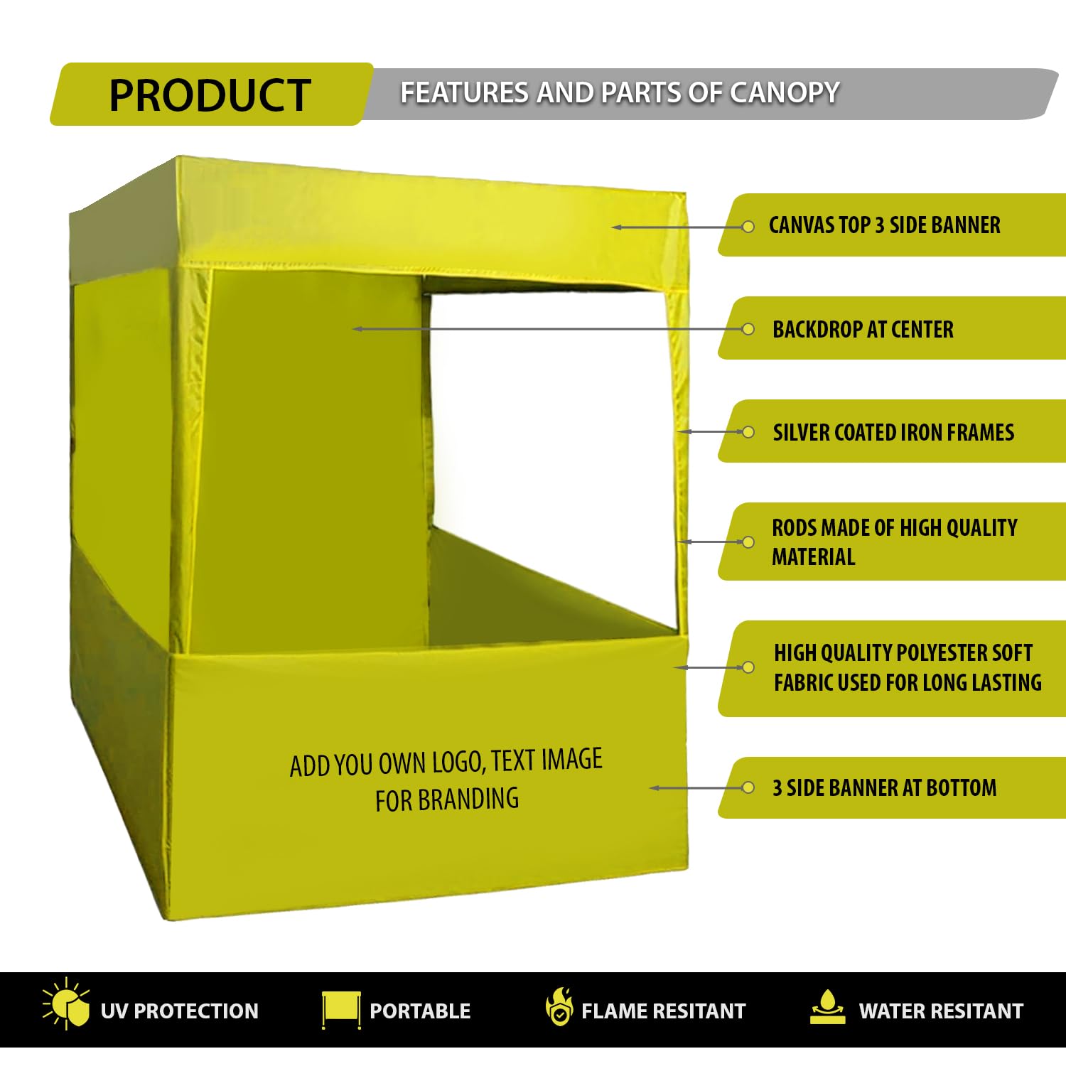 ORILEY Promotional Canopy 6x6x7 ft Foldable Multipurpose Water Resistant Portable Tent for Camping Advertising Trade Shows Fairs (3-Side Open, Yellow)
