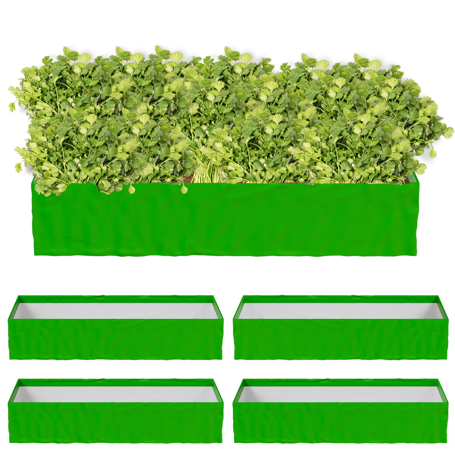 ORILEY Rectangular HDPE Grow Bag Heavy-Duty Fabric Garden Bed Breathable Container with Water Retention for Herb Flower Vegetable Plants (Green, 48x24x12 inch, 250 GSM Pack of 5)