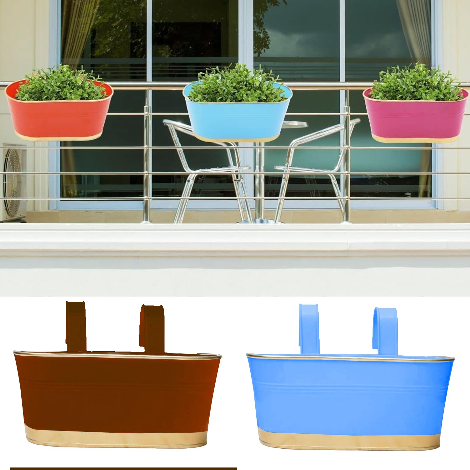ORILEY Round Railing Pots with Detachable Hooks Hanging Metal Planters Anti Rust Gamla for Balcony Grills Indoor Outdoor Gardening- (Pack of 5, Random)