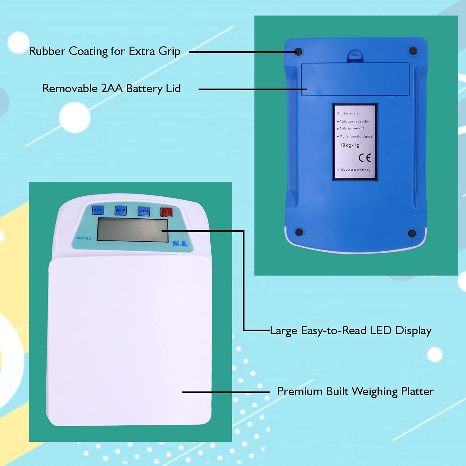 ORILEY TS200 Weighing Scale Multipurpose Portable Electronic Digital Kitchen Weight Machine with Backlight Display (10 Kg Capacity)